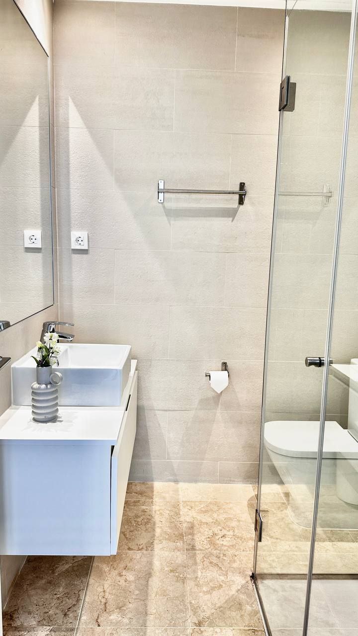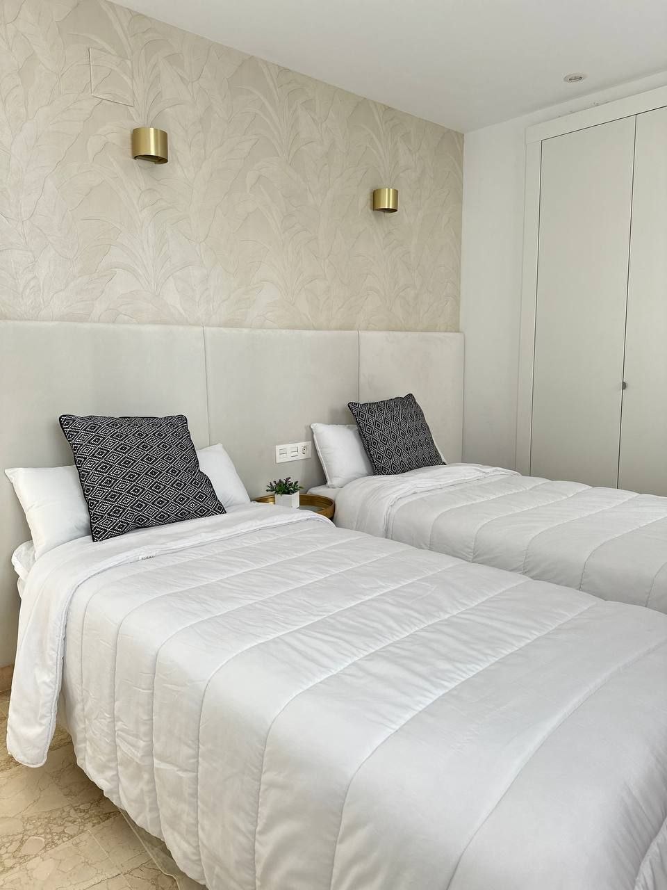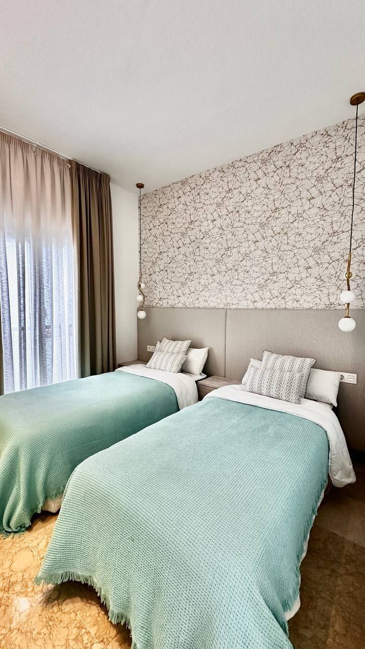 A three-bedroom apartment is available for rent in the gated community of Pueblo Paraiso. Three bedrooms Two bathrooms Large living room opens onto the kitchen Furnished solarium terrace with barbecue area, as well as a furnished balcony. The apartment has a stunning view. Total area: 101 m² The apartment includes all appliances, dishes, bed linens, air conditioning, and Wi-Fi Parking meter and storage space The community itself offers swimming pools, a gym, a restaurant, a playground, and coworking space.
